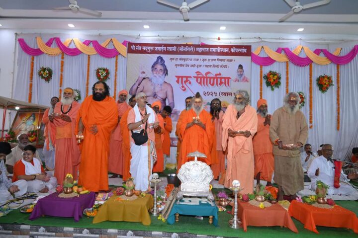 कोपरगांव प्रतिनिधी, दि. १० : त्याग, श्रम, तप, ज्ञान, विद्या, अध्ययन, अनुभव, कर्तृत्व, वकृत्व, दार्तृत्व, ममता आदि सर्व गुण राष्ट्रसंत सदगुरू जनार्दन स्वामी मौनगिरींच्या ठायी होते. गुरूपौर्णिमेला त्यांचे अनन्यसाधारण महत्व असुन गुरू शिष्याच्या नात्याचा संगम कोपरगांव बेट भागात पार पडला असे प्रतिपादन मठाधिपती रमेशगिरी महाराज यांनी केले. सालाबादप्रमाणे याही वर्षी कोपरगांव बेट भागातील राष्ट्रसंत जनार्दन स्वामी समाधीस्थानावर गुरूपौर्णिमा उत्सव हजारो भाविकांच्या उपस्थितीत संपन्न झाला. त्याप्रसंगी ते बोलत होते.