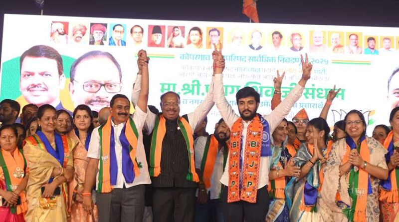 कोपरगाव प्रतिनिधी, दि. १८ : भाजपा मित्रपक्षांच्या उमेदवाराच्या प्रचार सभेसाठी महसूलमंत्री चंद्रशेखर बावनकुळे हे कोपरगाव येथे आले होते. यावेळी त्यांनी मोठे निर्णय जाहीर करून मास्टर स्ट्रोक लगावून निवडणूक एकतर्फी करून टाकली आहे. शासनाचे मुख्यमंत्र्यांच्या नंतर दुसरे सर्वात महत्वाचे निर्णय घेणारे मंत्री असल्याने ते काय बोलतात याकडे लक्ष लागले होते. भाजपा मित्रपक्षांचे नगराध्यक्ष पदाचे उमेदवार पराग संधान यांनी प्रास्ताविक व स्वागत केले.